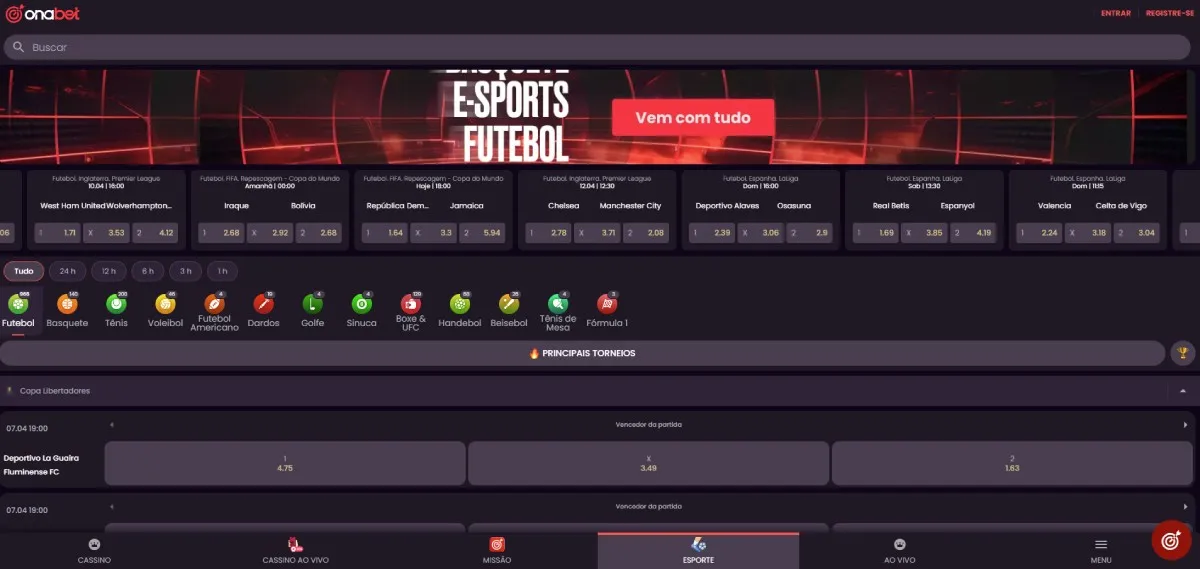 A Onabet se destaca por oferecer uma navegação simples e bem organizada, com acesso rápido aos principais mercados esportivos, especialmente em futebol, que concentra boa parte das opções disponíveis.