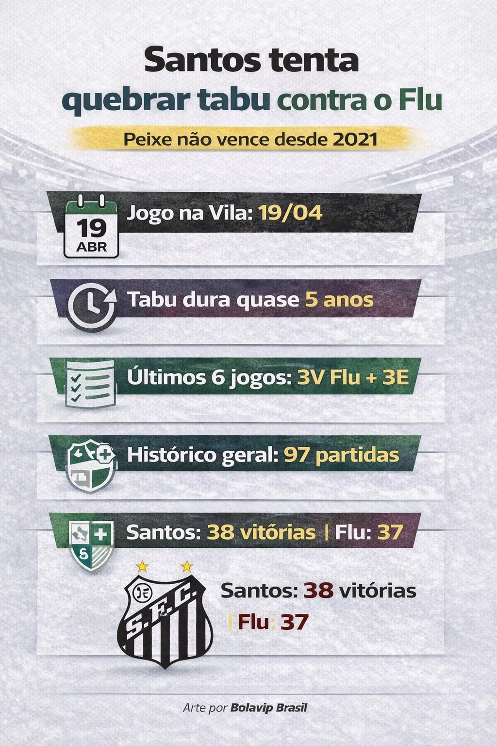 Enquanto o Peixão ficou no 1 a 1 com o Recoleta (PAR), o Flu foi surpreendido pelo Independiente Rivadavia (ARG) em pleno Maracanã. Agora, dois números chamam atenção antes da bola rolar na Vila Belmiro.
